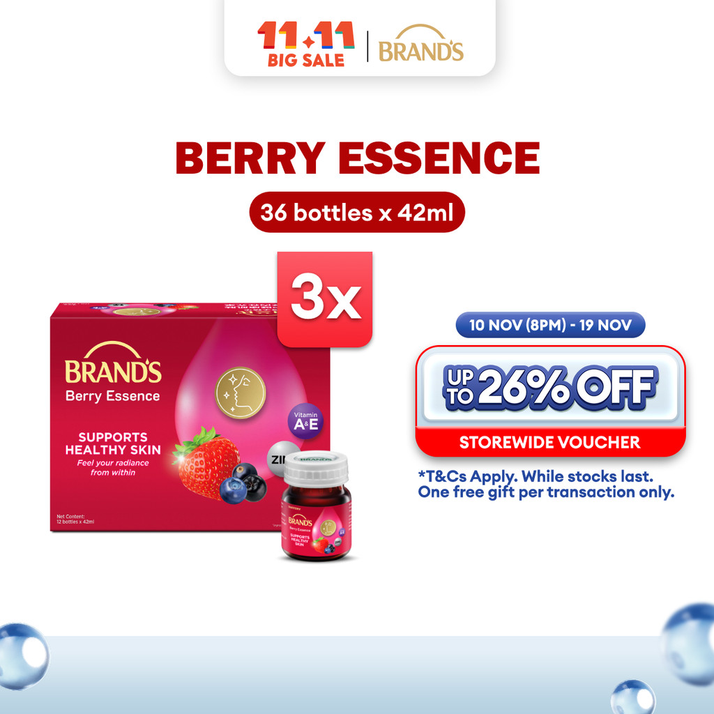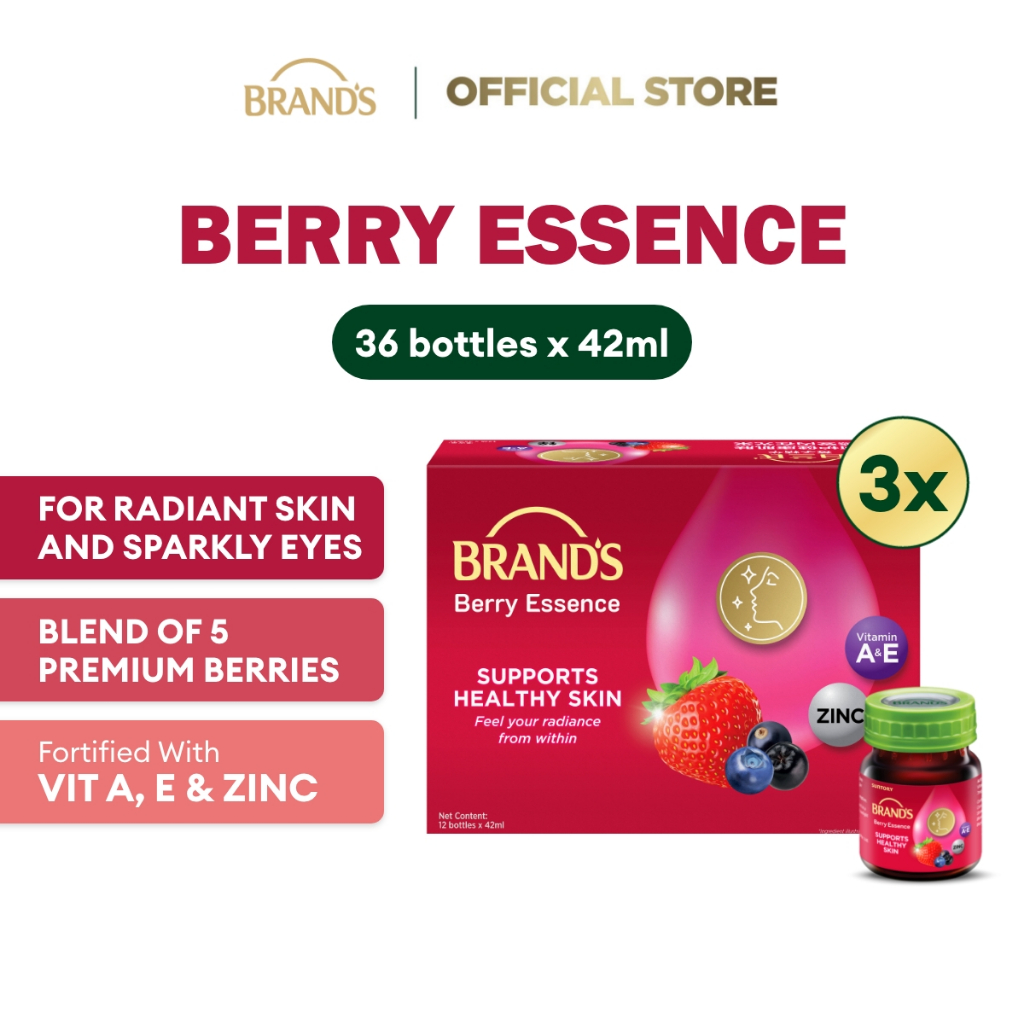[Bundle of 3] BRAND'S Berry Essence 42ml (12 btls/pack) - For Radiant Skin, With Vitamin A, E, Zinc, Halal